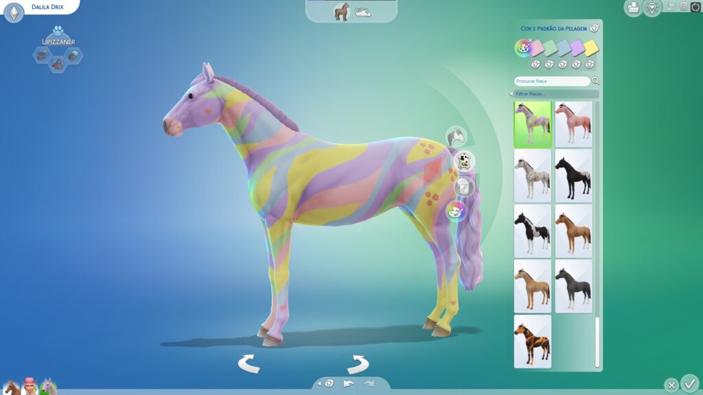 O ponto forte do pacote de expansão é, sem dúvida, a introdução dos Cavalos ao mundo de The Sims 4. Com mais de 30 raças disponíveis, os jogadores têm uma ampla variedade de opções para criar o Cavalo perfeito para os seus Sims. A capacidade de customizar a aparência física dos cavalos, incluindo corpo, cor, pelagem e padrão de pelagem, oferece um nível significativo de detalhes e personalização.