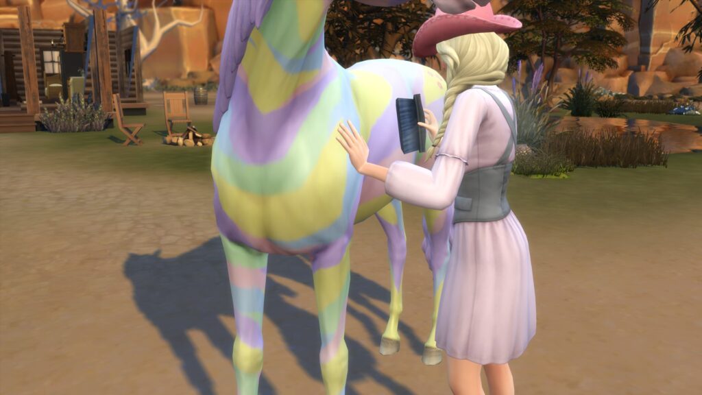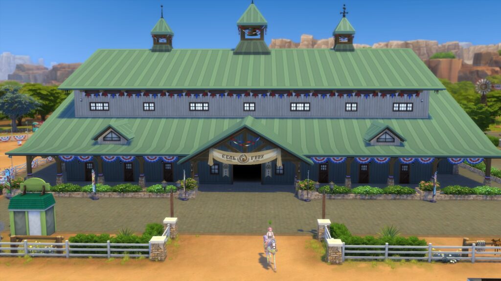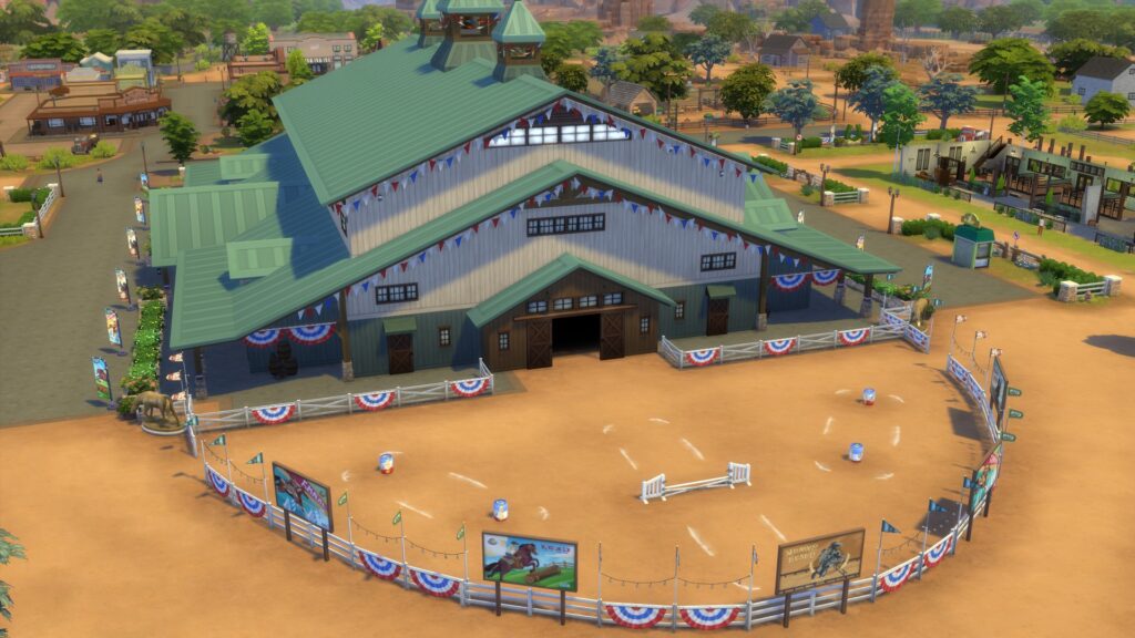 Em The Sims 4 Tomando as Rédeas temos um lote comunitário chamado Centro Hípico Feno-Menal, com diversas atividades, que infelizmente não podemos acompanhar. Também há a Caverna do Cavalo do Terror, que fica nas montanhas, próximo a casa do Don Gooseman.