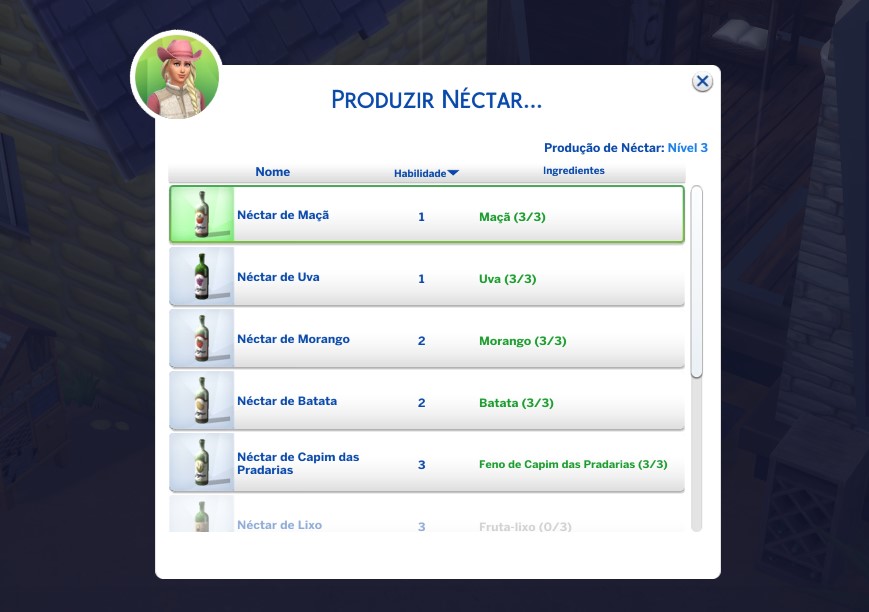 Seu Sim poderá começar a produção comprando a “Máquina de Néctar Gira-Fruta”, pagando 350 Simoleons, no modo Construção. O Néctar produzido pode ser armazenado no “Suporte de Néctar Empalhável do Rancho”, que custa 300 Simoleons. Os ingredientes para a produção pode ser adquirido clicando na Máquina de Néctar ou seu Sim poderá produzir os próprios ingredientes através da plantação de batata, limão, maçã, morando ou uva.