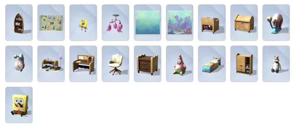 Todos os itens do The Sims 4 Kit Quarto Infantil do Bob Esponja