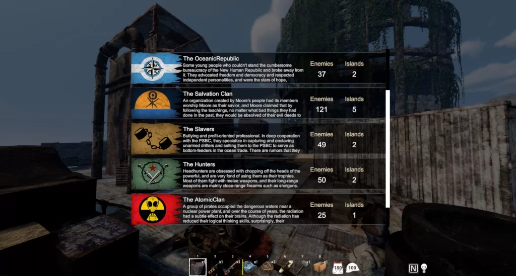 • Oceanic Republic: sobreviventes improvisados, com armamento limitado.