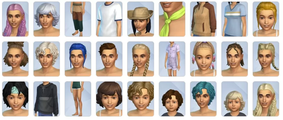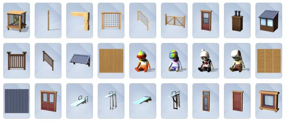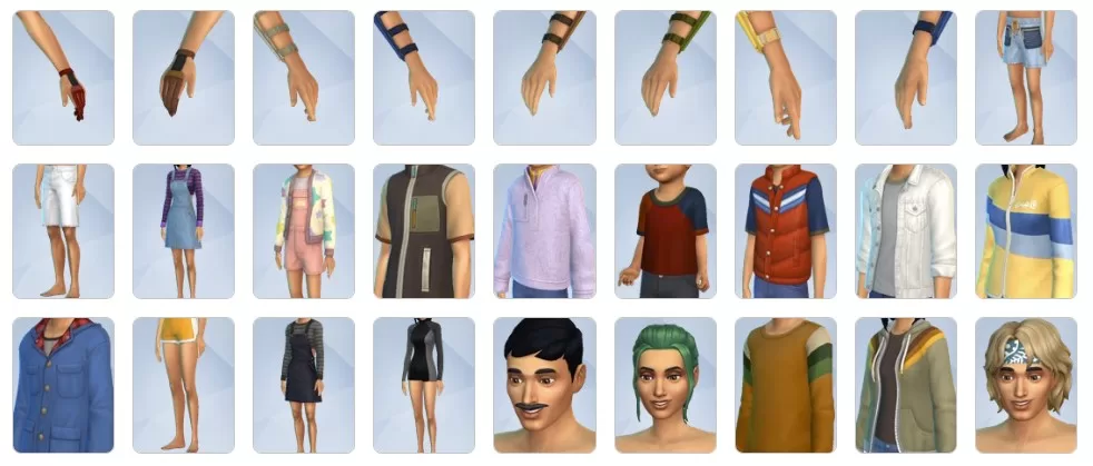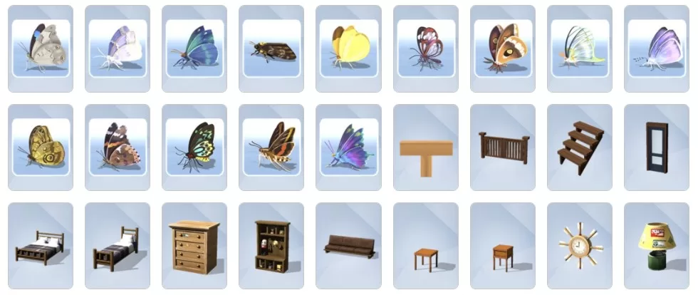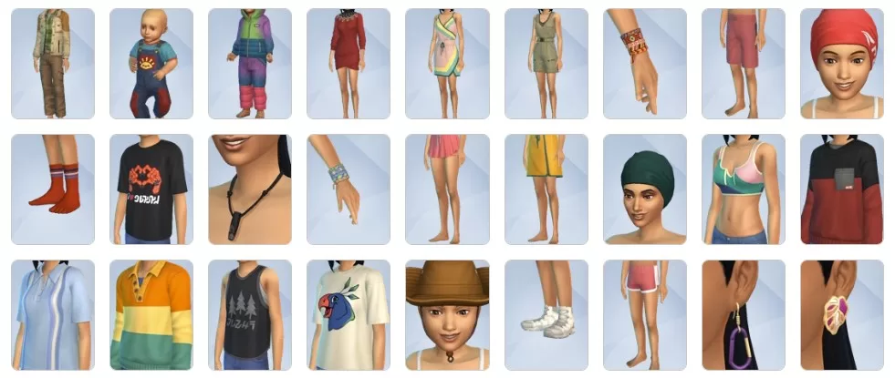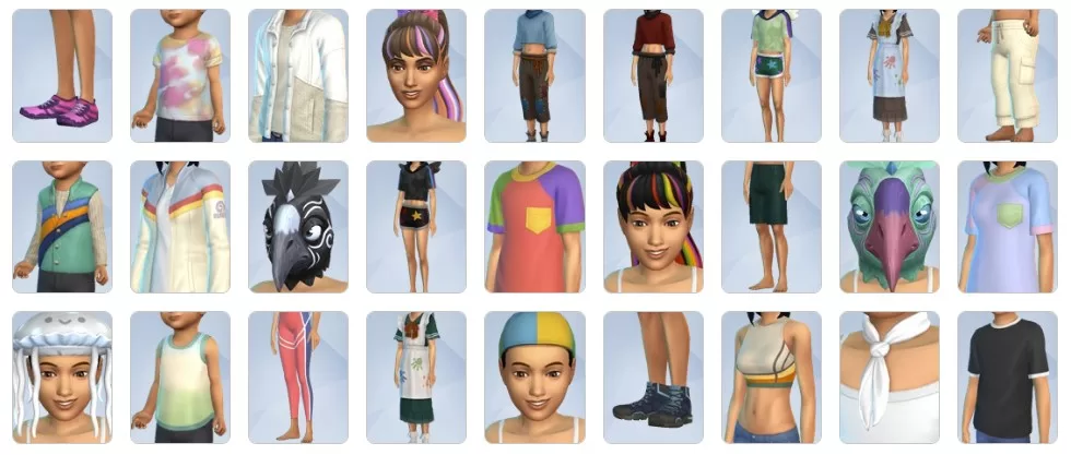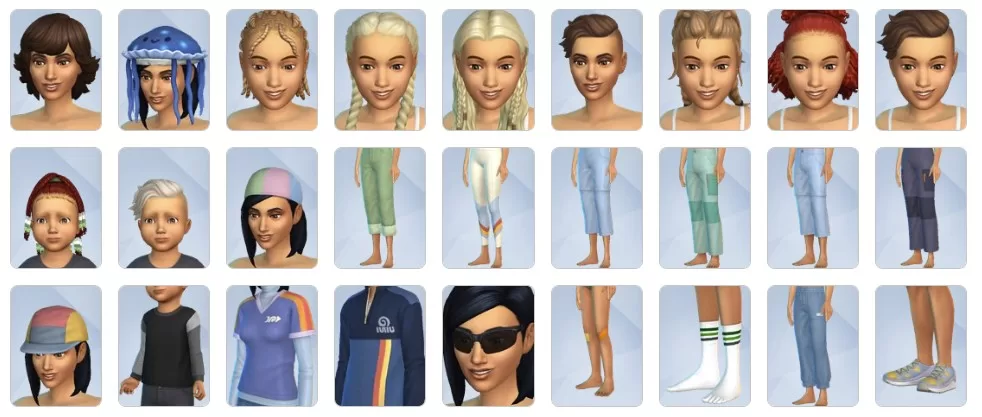 Foram introduzidos 157 itens no Criar Um Sim (CAS) e 199 itens no Modo Construção, dentre eles uma infinidade de novos penteados, roupas, acessórios e vários objetos com temática infantil. Clique nas imagens abaixo para ampliá-las!
